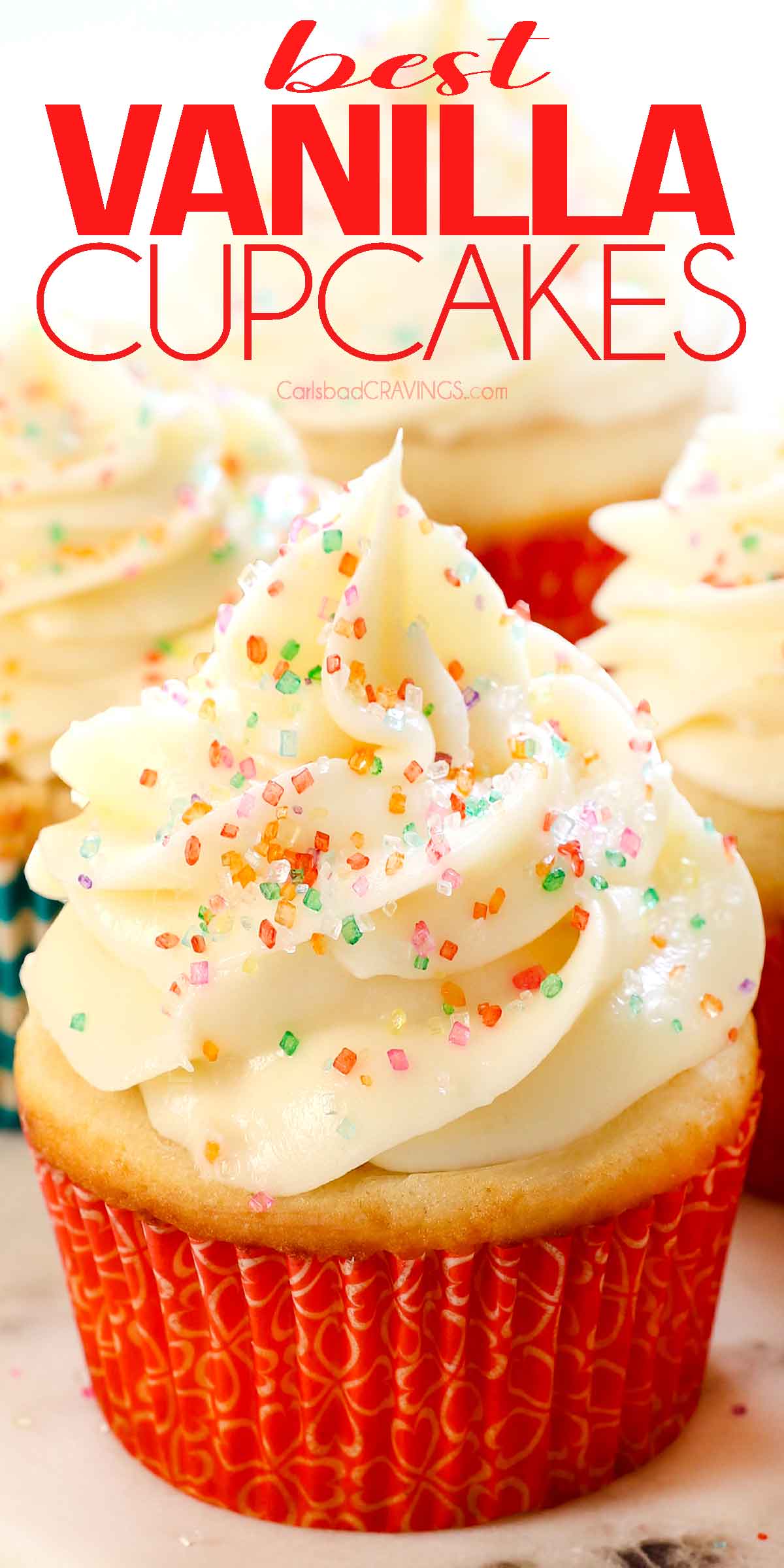 To create the best vanilla cupcake recipe, I literally made 10 different versions: some with whole eggs, some with egg whites, some with oil, some with butter and oil, some with butter and sour cream, some with flour, some with cake flour, some with milk, some with buttermilk, etc., all in different proportions. Here’s what I discovered make the best cupcakes: